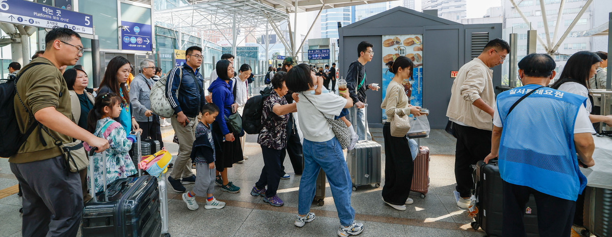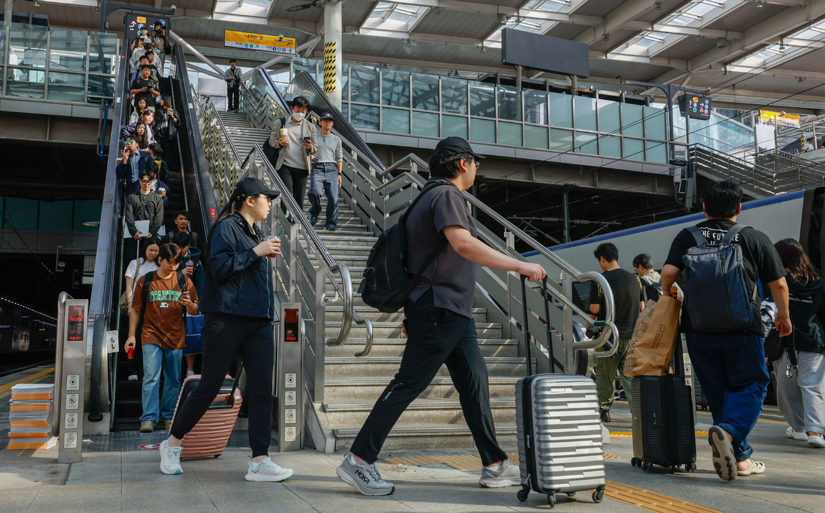 추석 연휴를 앞둔 2일 서울 용산구 서울역에서 시민들이 귀성길에 나서고 있다.