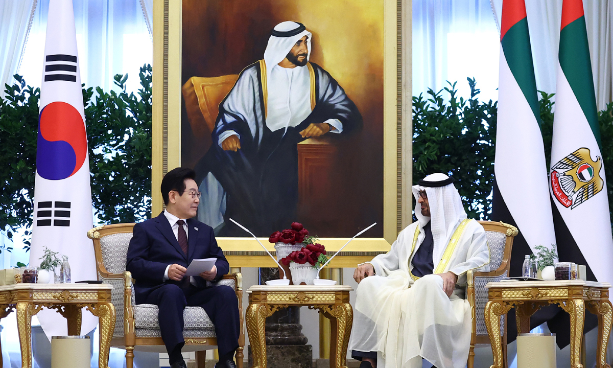 이재명 대통령과 무함마드 빈 자이드 알 나흐얀 아랍에미리트(UAE) 대통령이 18일(현지시간) 아부다비에서 정상회담을 갖고 공동 선언문 ‘한국과 UAE 100년 동행을 위한 새로운 도약’을 발표했다. 국빈 방문 중인 이 대통령은 정상회담에서 “(UAE는) 건국 100주년을 맞는 2071년까지 세계 최고 국가로 자리매김하겠다는 원대한 계획을 2021년 발표한 것으로 안다. 대한민국은 이 위대한 여정의 핵심 파트너”라며 ‘100년 동행’을 약속했다. 이 대통령은 UAE에 이어 이집트를 거쳐 주요 20개국(G20) 정상회의가 열리는 남아프리카공화국에 이어 튀르키예까지 4개국 순방에 나선 참이다. 그간 한반도를 둘러싼 미·중·일에 치우쳤던 외교 지평을 중동·아프리카로 확대하는 계기로 삼아야 할 것이다.